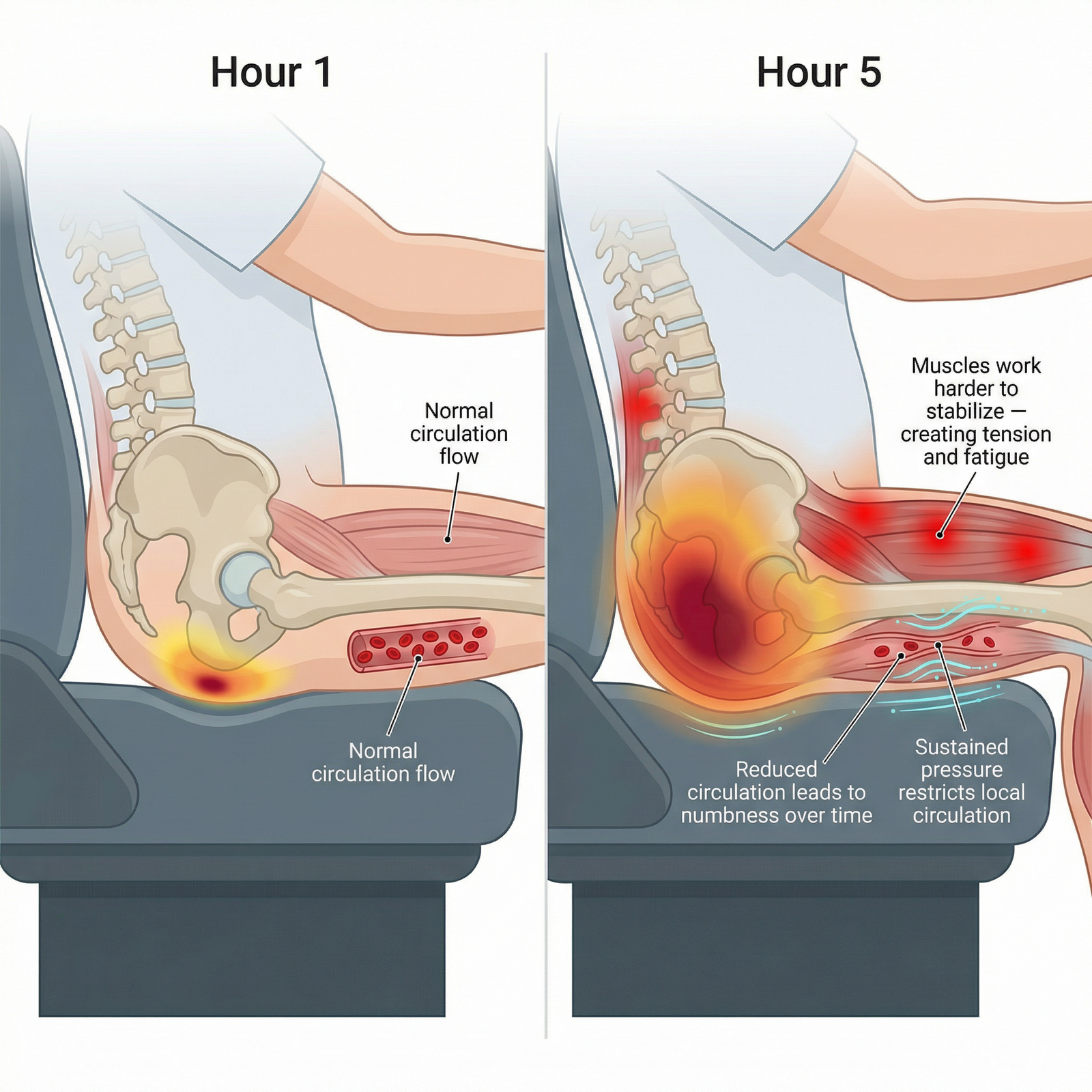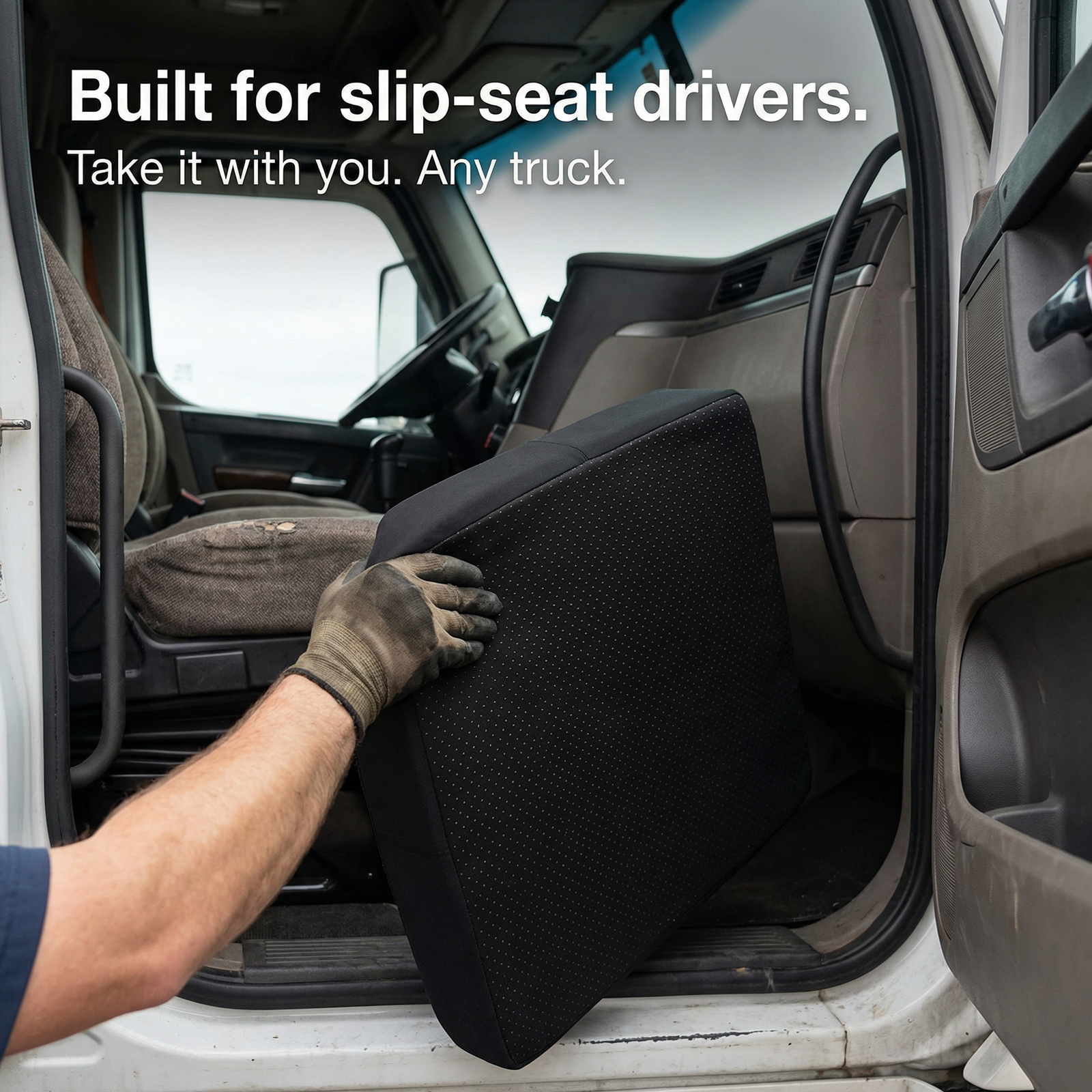 No installation. No replacement. Just a consistent pressure layer you can move between trucks. - Not posture correction. Not a medical device.